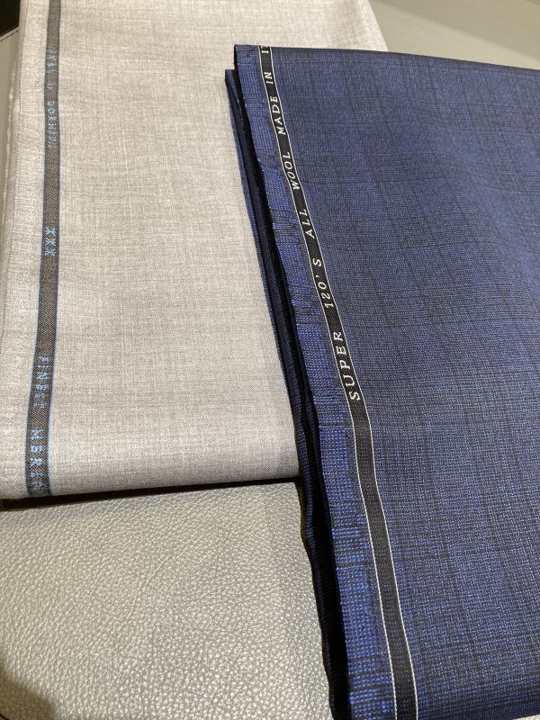 写真の、紺チェックがTOGNAというブランド、グレーがDORMEUILのEXCELシリーズという生地になります。