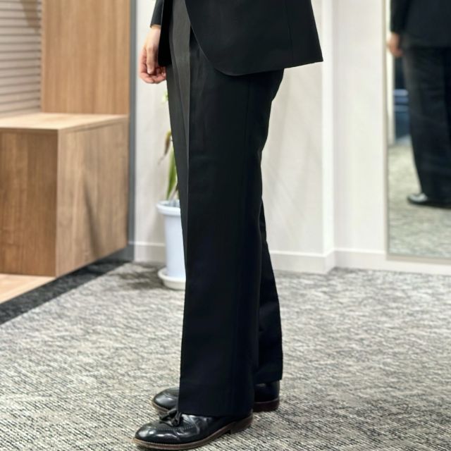 裾幅の広さをとりモーニングカットにしている為、クッションも無くスラックスの出来は完璧でございます✨