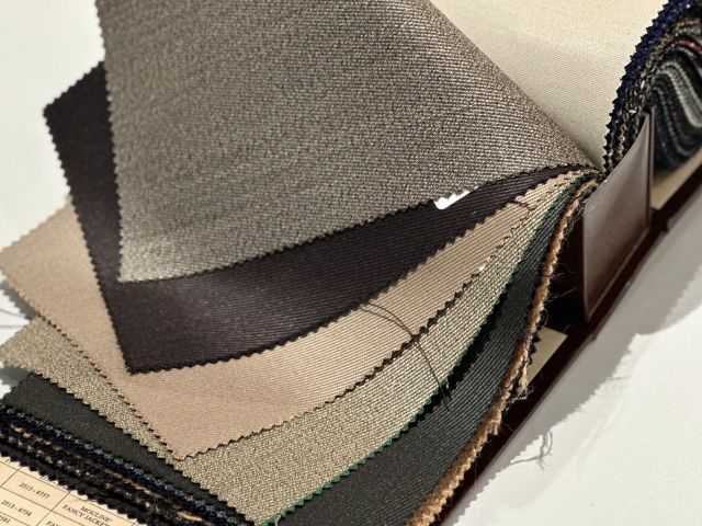 こういった織柄・綾目のしっかり入った生地であれば、上下2ピース・ベスト付3ピースでお仕立てされるとより使いやすいかと!!