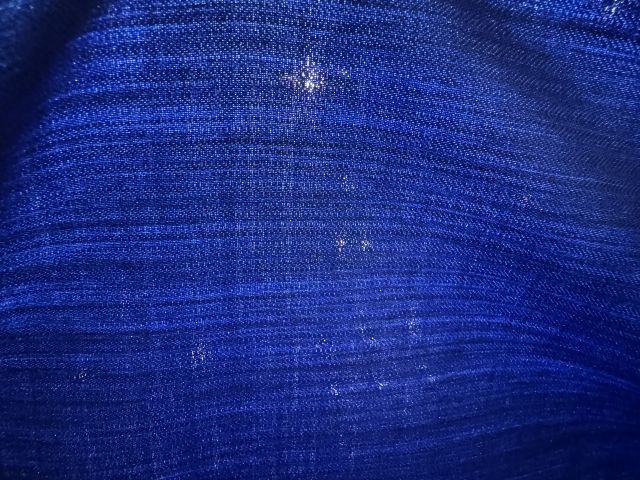 完全夏用の生地は平織りといい経糸と緯糸を交互に織っており写真のように光に当てるとすごく透けて見えます。