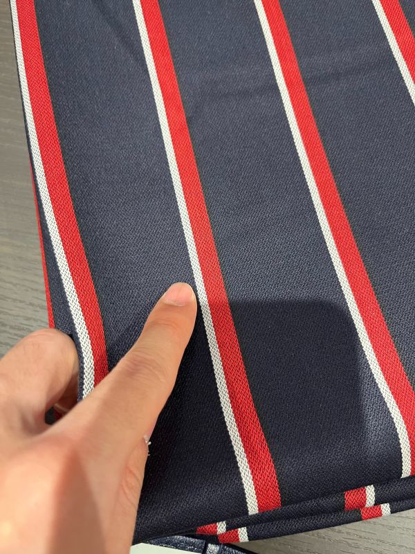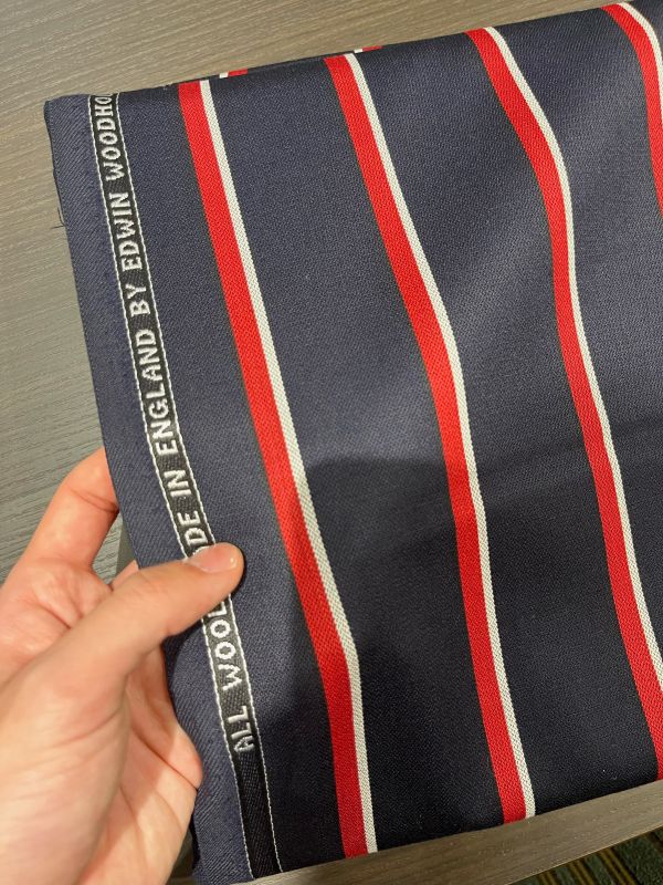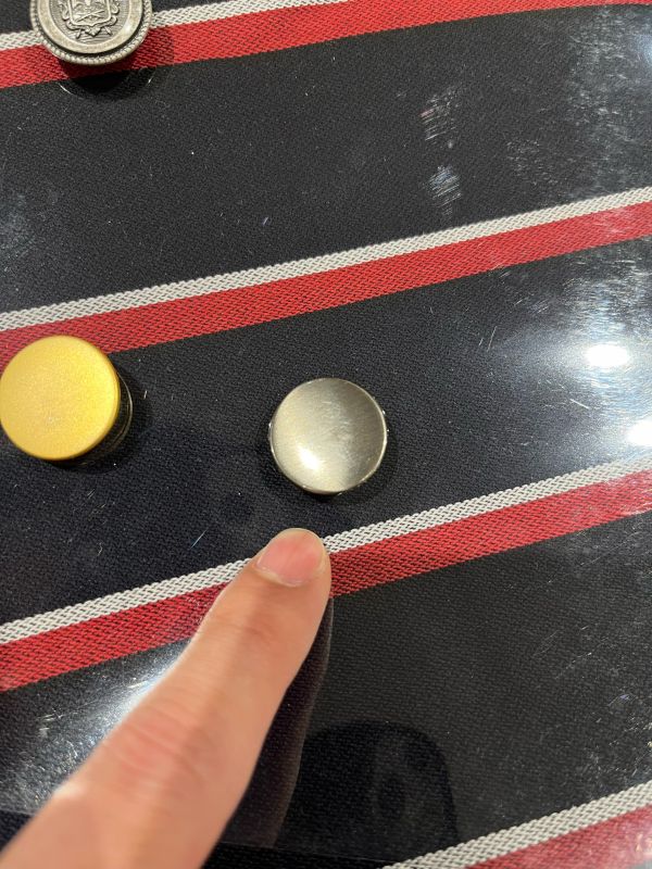 こちらは赤と白のストライプなので、色合わせでメタル釦を銀色にしたいです。