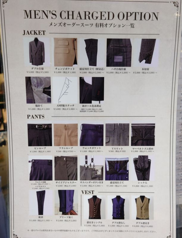 有料の裏地やボタン