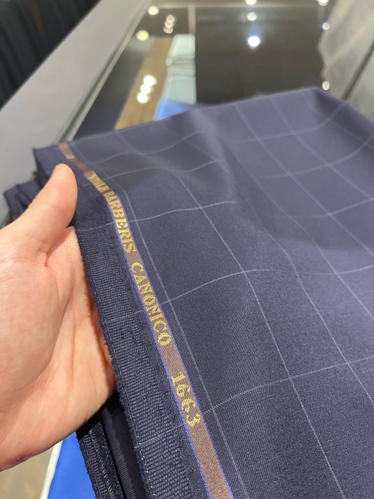 ナチュラルストレッチが効いてて光沢感があって人気のカノニコの生地を使用しました。
