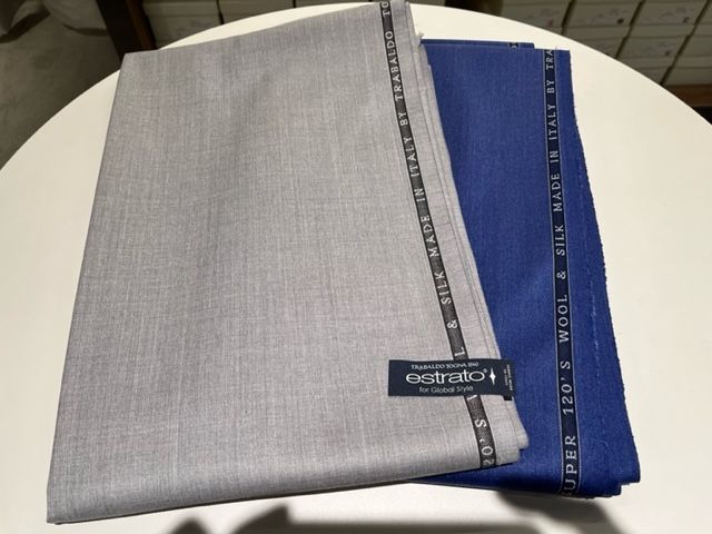 その中でも色は爽やかな青とグレーでシルクが13%入った生地になります。