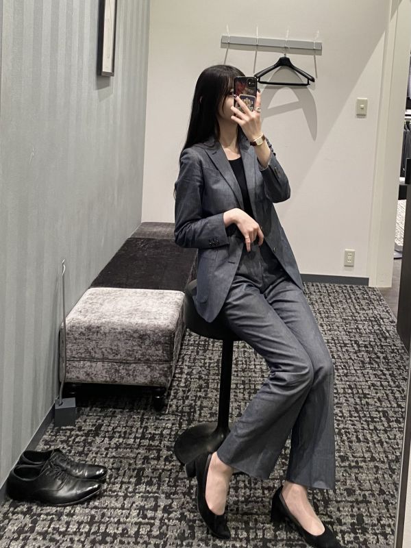 そんな私ですのでスーツはできるだけ動きやすく、かつ細見えしたいです。