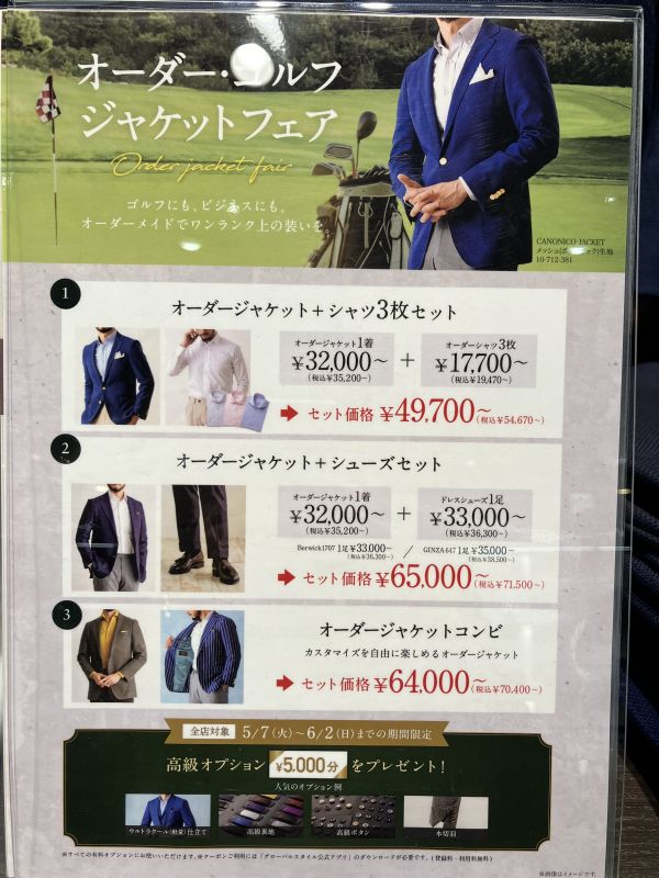 こちらをご利用いただければジャケット×シャツ3着、ジャケット×シューズなどの組み合わせでお得です。