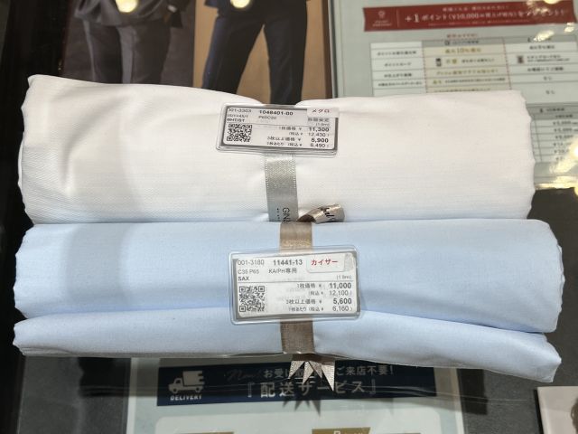 ぜひ、一度店舗に来て頂いて、シャツ生地を手に取って見て下さい。