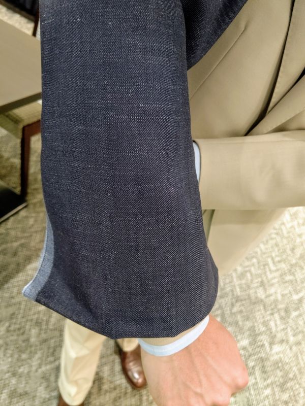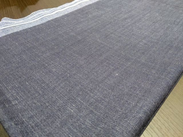 デニム調の三者混生地です。(ウール71%、シルク15%、リネン14%)
