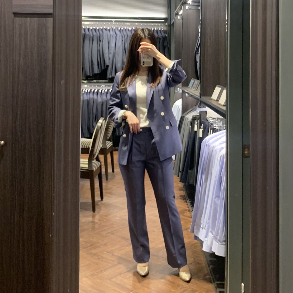 パープルはダブルのジャケットにパンツはフレアっぽくしてみました!