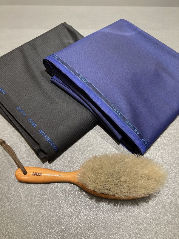 まず、その日に着終えたスーツは肩のサイズに合わせた太めのスーツハンガーにかけ、毛足の長い豚毛ブラシ等で、下から上にブラッシングしていきます!
