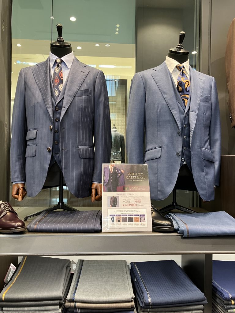 上の写真はKAISERモデルといって高級感のある生地で作り上げたスーツになっています。