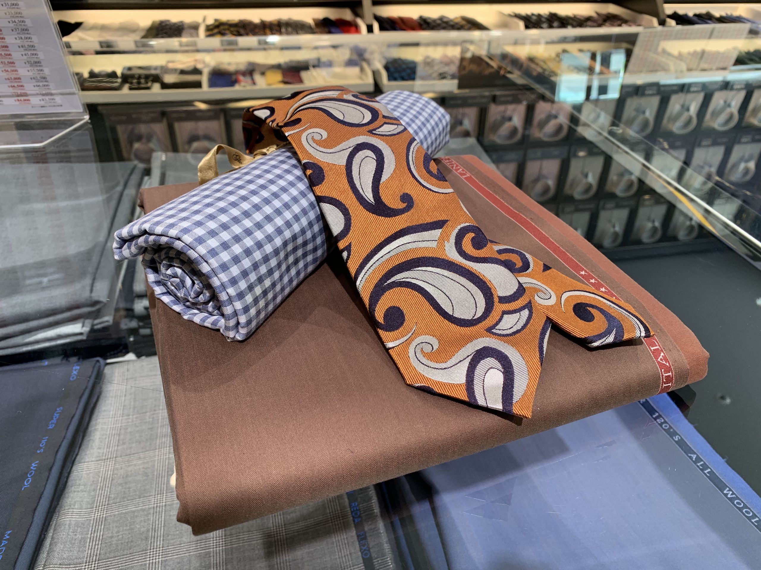時期的にもブラウンは季節感が馴染まないイメージもあるかと思いますが、季節に合うトーンを考慮しながらネクタイチョイスを決めてまいります。