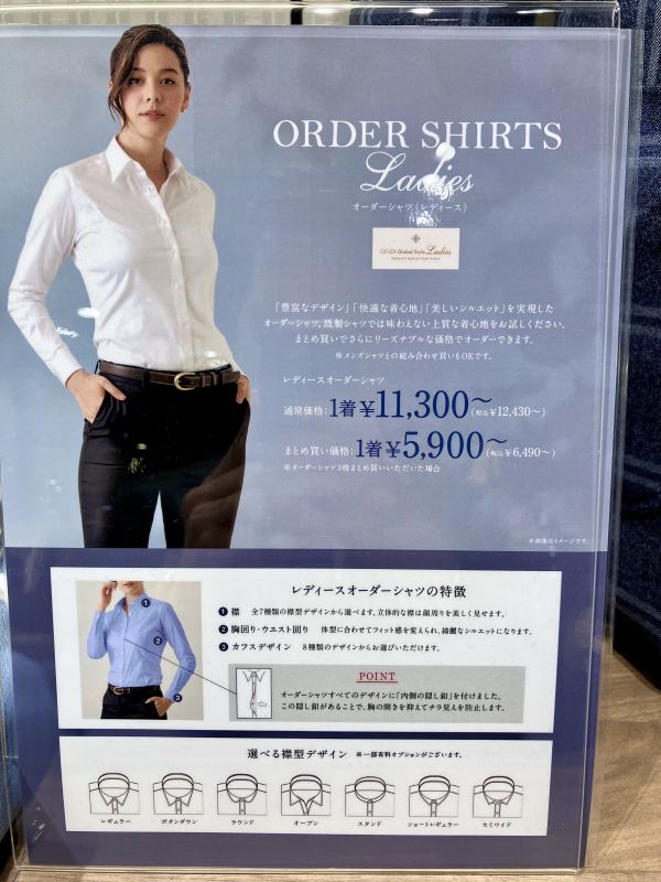 ご存知ない方もいらっしゃるかと思いますがレディースのシャツもグローバルスタイルでお仕立ていただく事が出来ます。