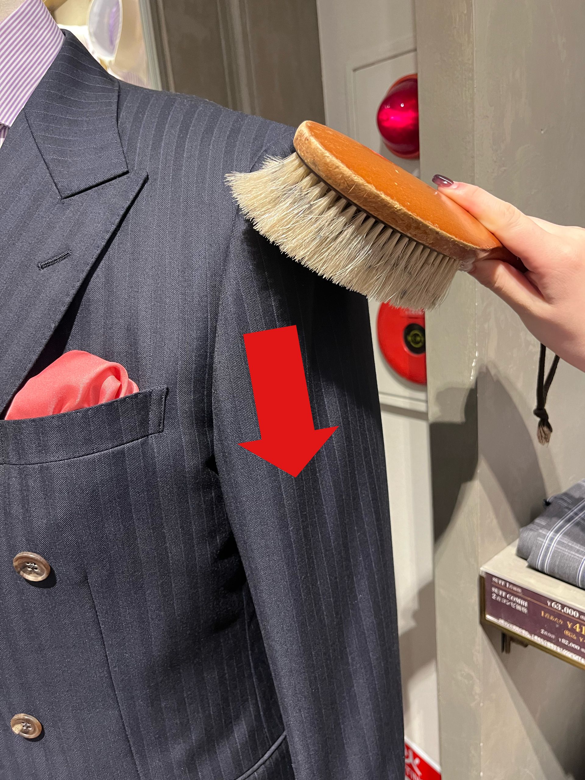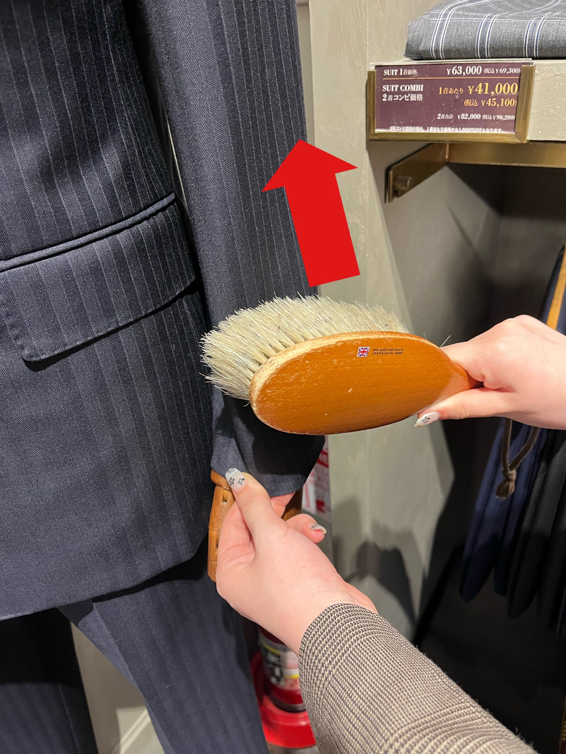 ブラッシングをすることで、「スーツに付着した埃が落ちる」、「生地の風合いを保つ」、「擦れやすいヒジやヒザ部分のテカリ防止」などの効果が得られます。