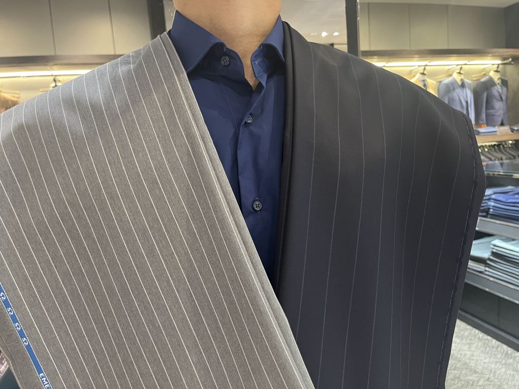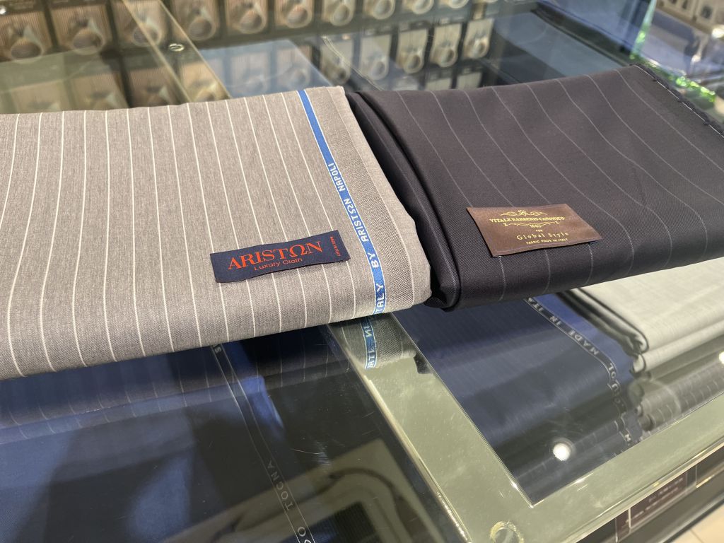 アリストンのグレーストライプとカノニコのネイビーストライプ。