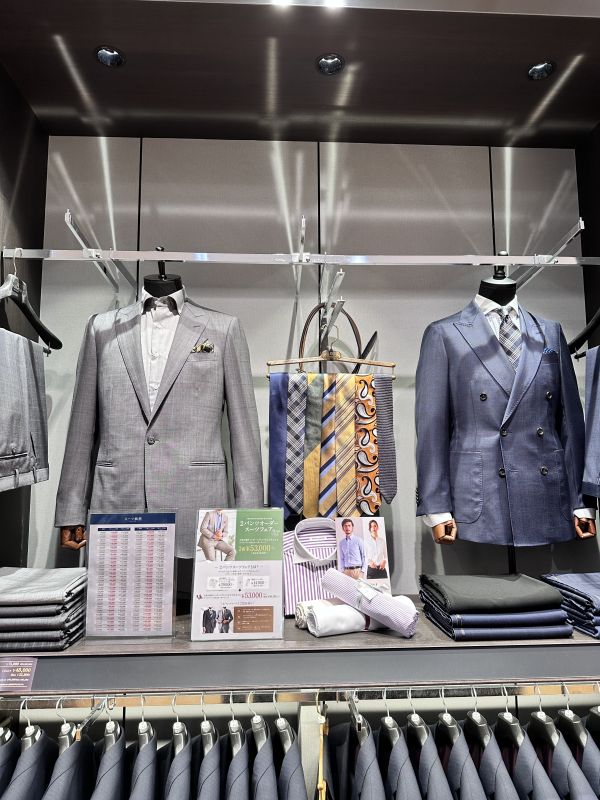 GINZAグローバルスタイルクラックス仙台店では、初めてのお客様でも自分にどんな色が合うのか、どんなものが欲しいのかをイメージしていただきやすいように各色サンプルスーツもご用意しております!