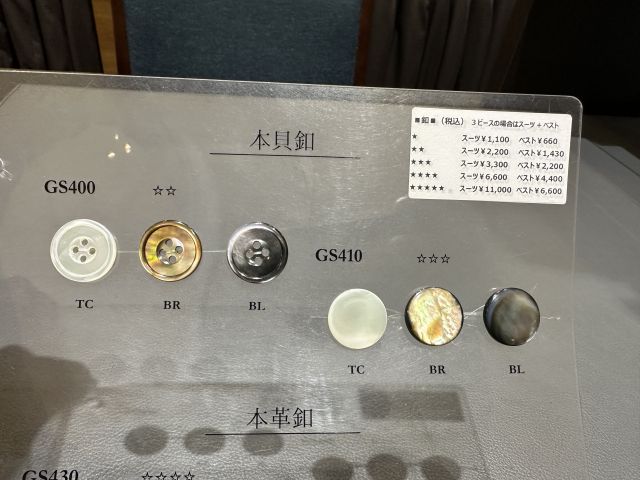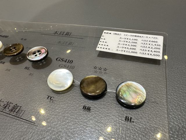 ぜひ春夏用でお仕立てされる際は、貝釦もご検討してみてください!