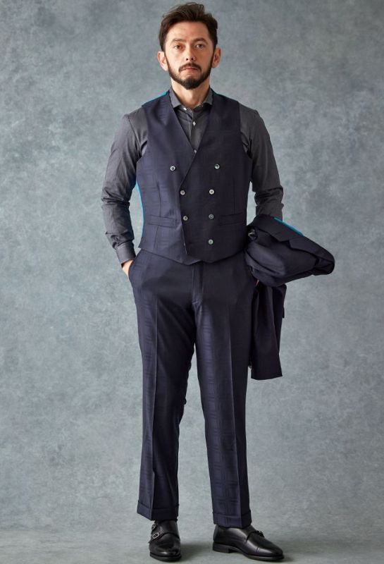 ジャケットとパンツのスーツスタイルに ” ベスト ” を一緒に着るスタイルの事