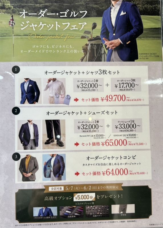現在、オーダー・ゴルフジャケットフェアを行っております。