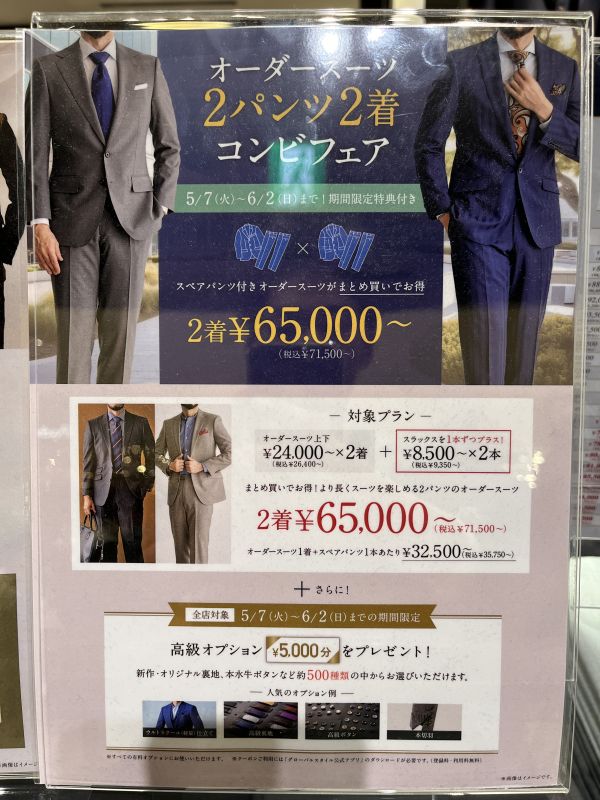 スペアパンツは一本¥8,500(税込¥9,350)~ で作ることができます!
