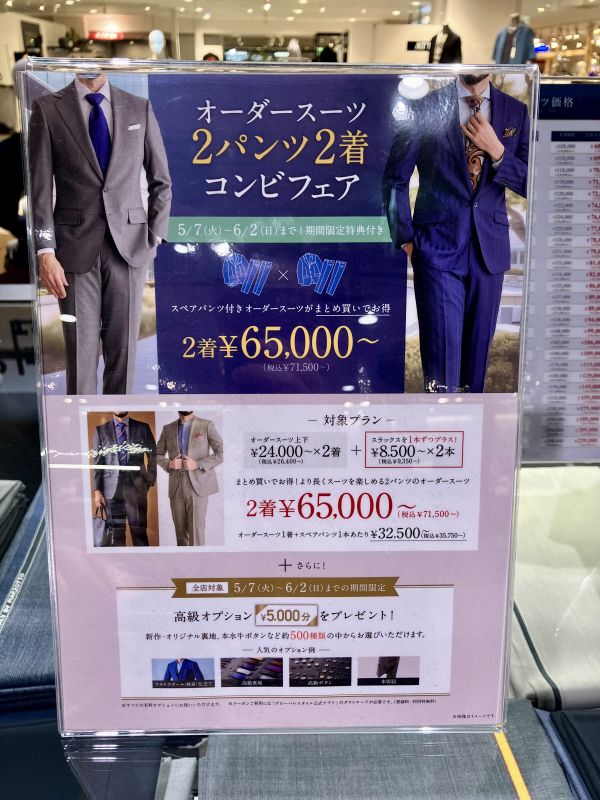 汗をかくことも多く、スラックスの股の擦れが起きるなどスーツが消耗しやすい季節になって参りました。