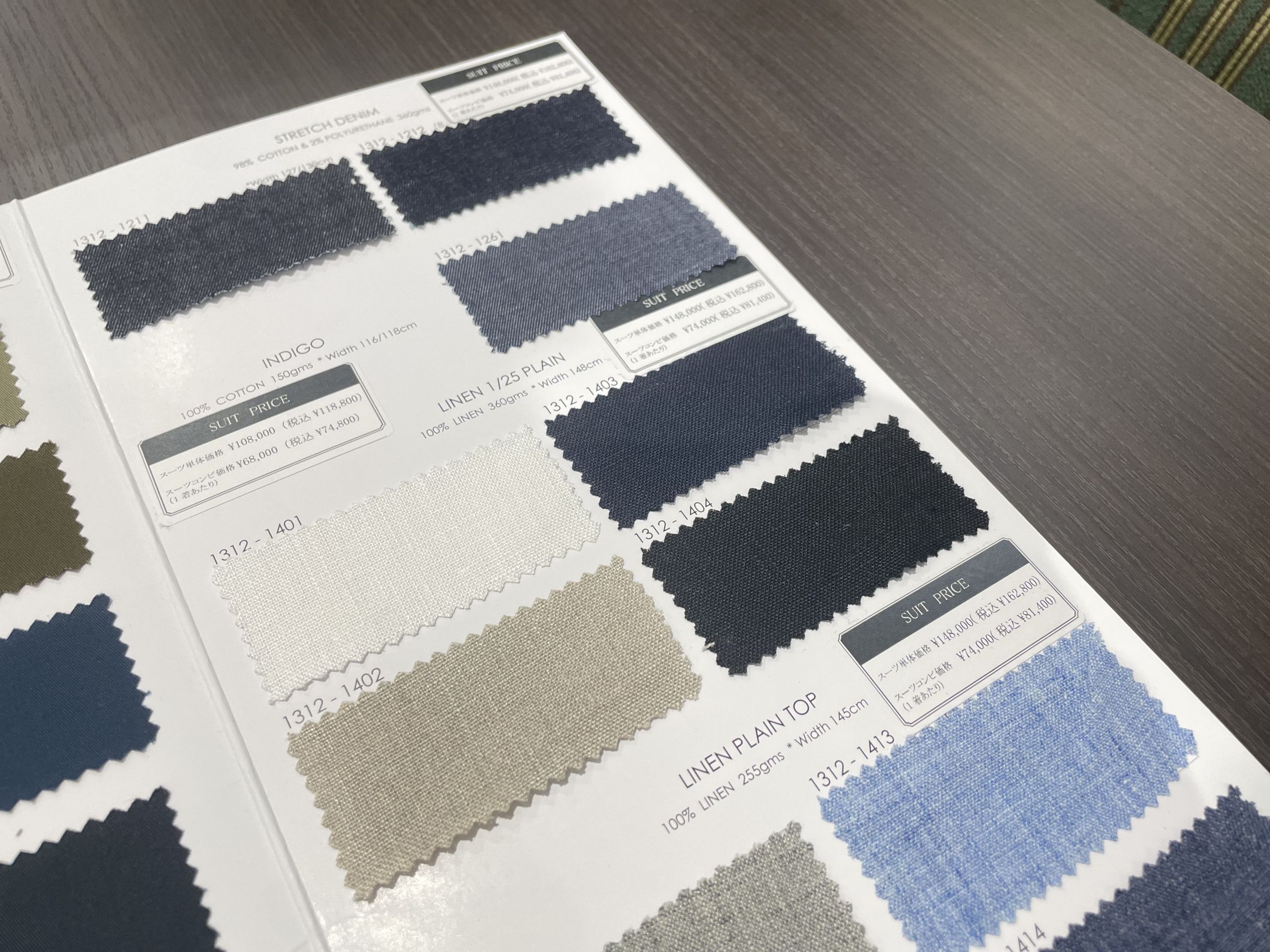 リネン100%の紺ブレは数年前から仕立てたいなと考えていたのでこの機会にと悩んでいます。