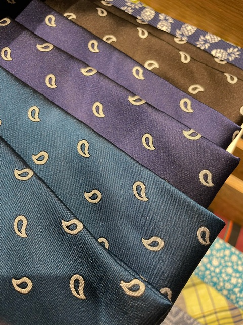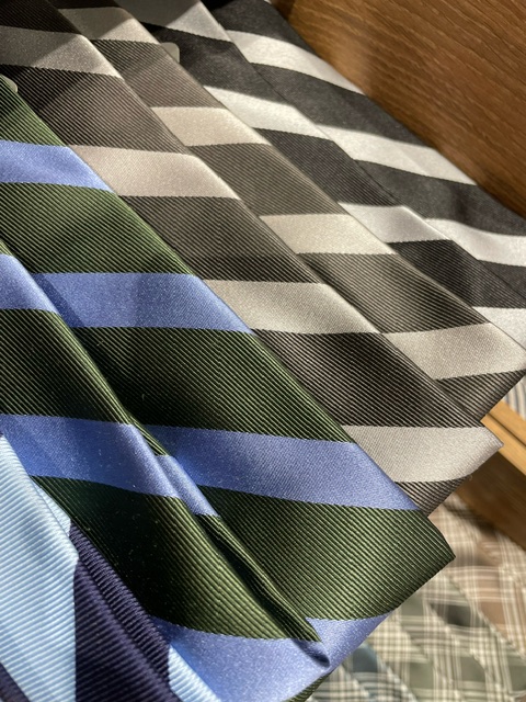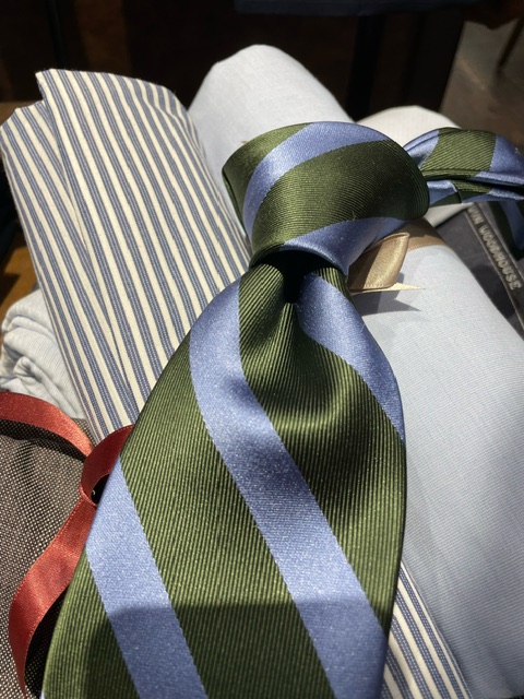 夏らしいグリーンに水色のストライプ、アースカラーで落ち着いていながら
