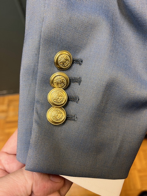 金ボタンからの本切羽!スーツやジャケットがお好きな方なんですねー