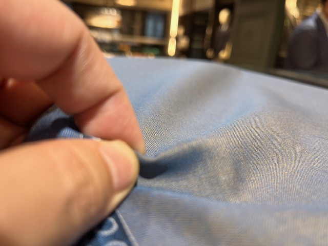 ちょっとシャンブレーっぽくも見えますが、正真正銘ソラーロ(玉虫生地)