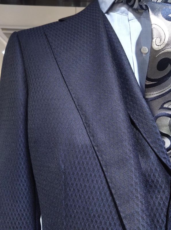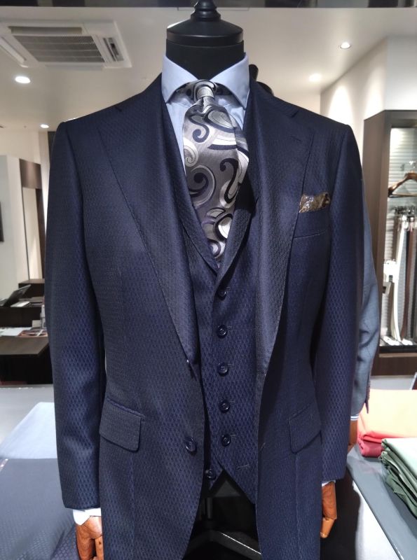 一見よくある普通のネイビースーツと思うかもしれませんが、生地をよくご覧ください。