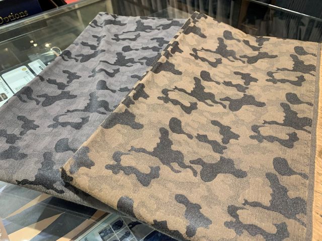 今回の新作ではありませんが、このような迷彩柄のセットアップ生地もあったりします!