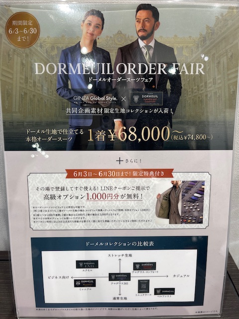 ドーメル1着ご購入いただくとLINEのお友達登録頂くと1000円分のオプション無料です!