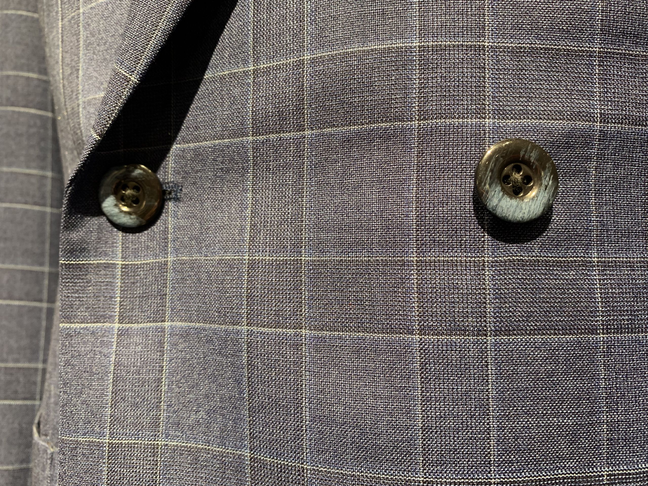 ただ、ナット釦は色のアクセントが強すぎるので、ブラウン、ブルー、グリーンなどカジュアル要素が高めの生地に合わせて頂くと馴染みやすいので、ベーシックは生地にはお付けすることはあまり推奨いたしません。