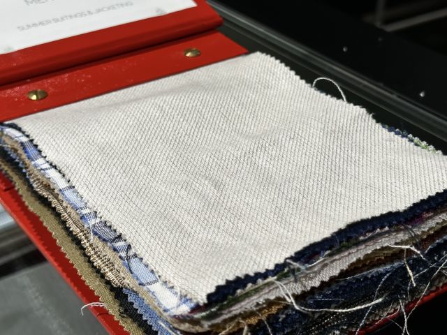 リネン100%のダブル2Pで、デザイン・釦・裏地などある程度全て整ってきているのですが、重要な生地が中々決まらない、、、