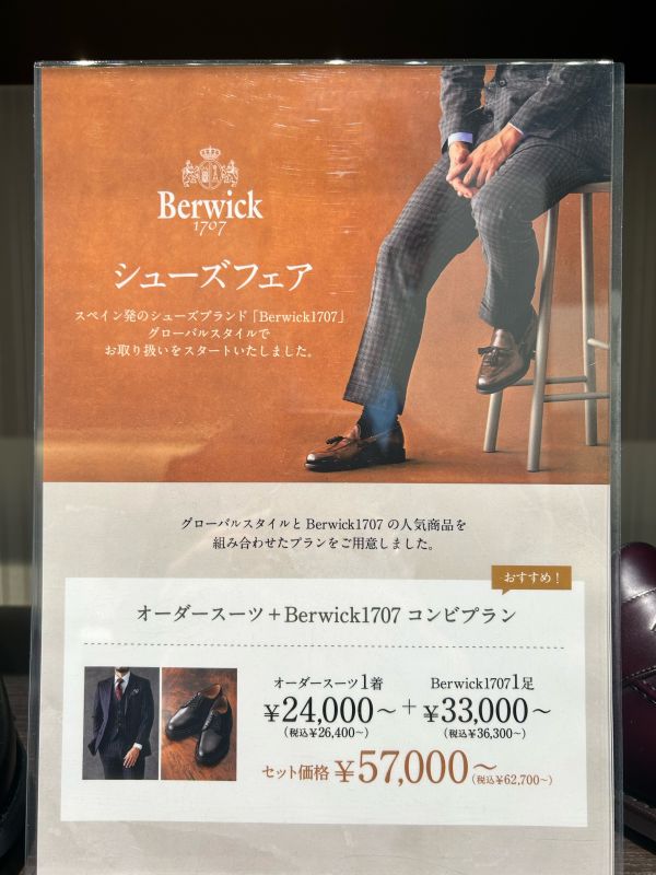 ただ、スーツ1着と【Berwick 1707】のシューズご購入いただくと、