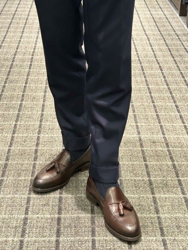 コインローファーよりカジュアル過ぎないので、ジャケパンスタイルだけではなく、皆様がお持ちのスーツにも合わせやすいかと…。
