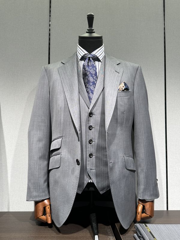 ライトグレーのヘリンボーンの折柄が入った生地です。