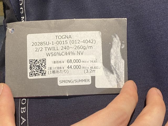 今回は今お仕立て中の紺ブレ2号機をご紹介します。