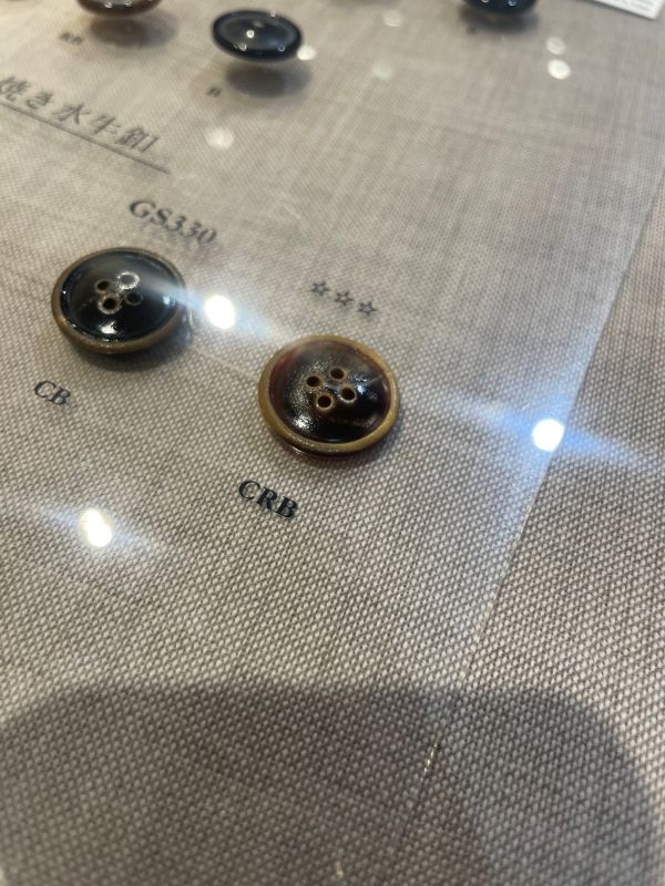 これに渋めの焼き水牛釦を組み合わせて、メンズモデルのシングルで頼んでみました!