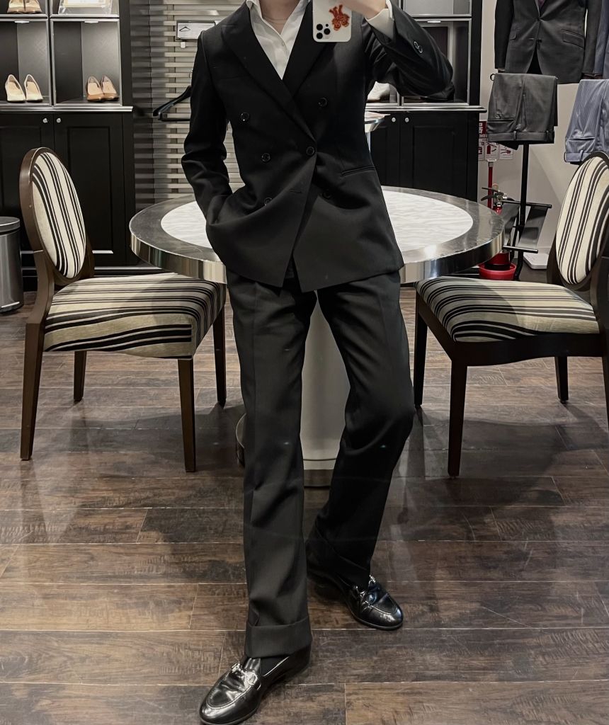 黒は夏場重たく見えてしまうのでシャツはノーネクタイで