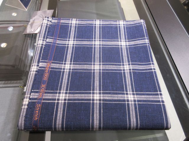 夏らしい爽やかなリネン混のネイビーのチェックになります。