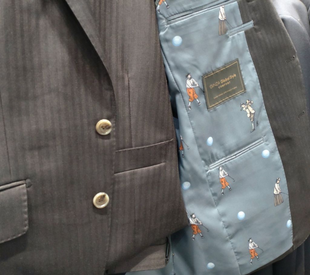 既製服だと 黒系や表地に合わせた色の裏地がよく見られますが