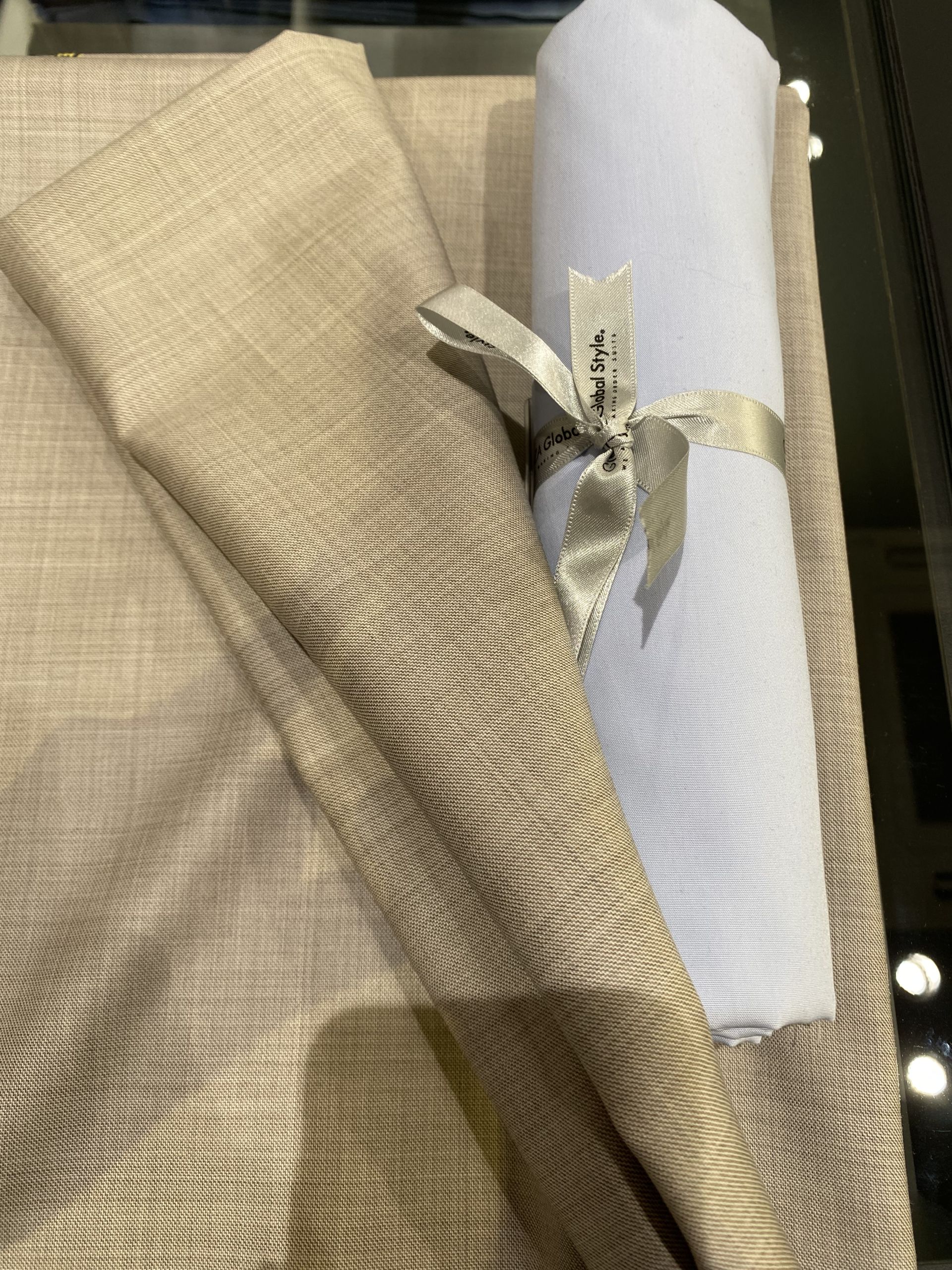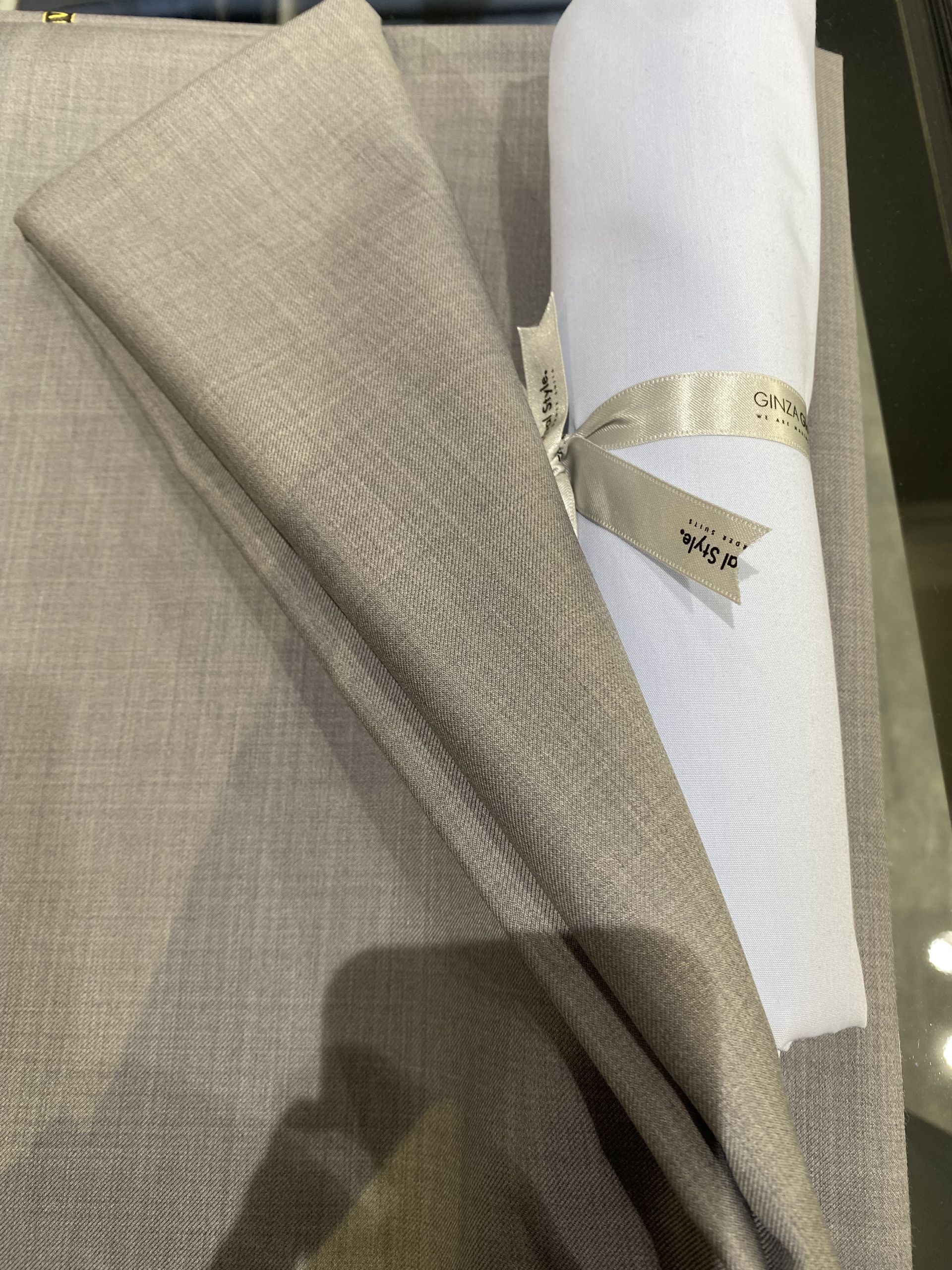 他にはライトグレーやベージュなどの明るいスーツとの合わせです。