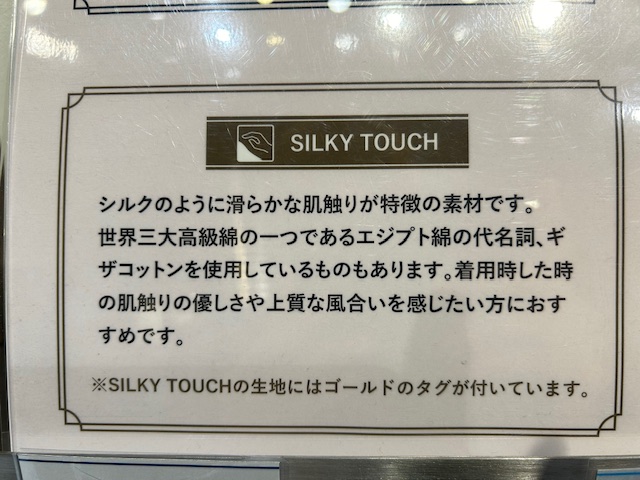 なにやら【SILKY TOUCH】というタグが付いておりますが何かと言いますと…