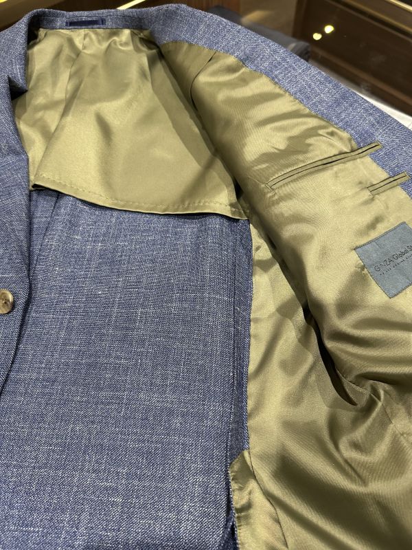 こちらのジャケットはジャケット用の生地で作られており、スーツの生地よりも織り目が荒いので通気性がよく、暑い夏でも涼しく着ていただけます!