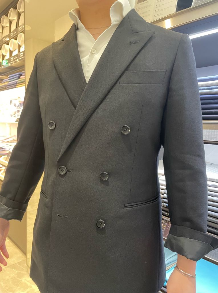 シンプルなブラック生地でもダブルジャケットにすることによって