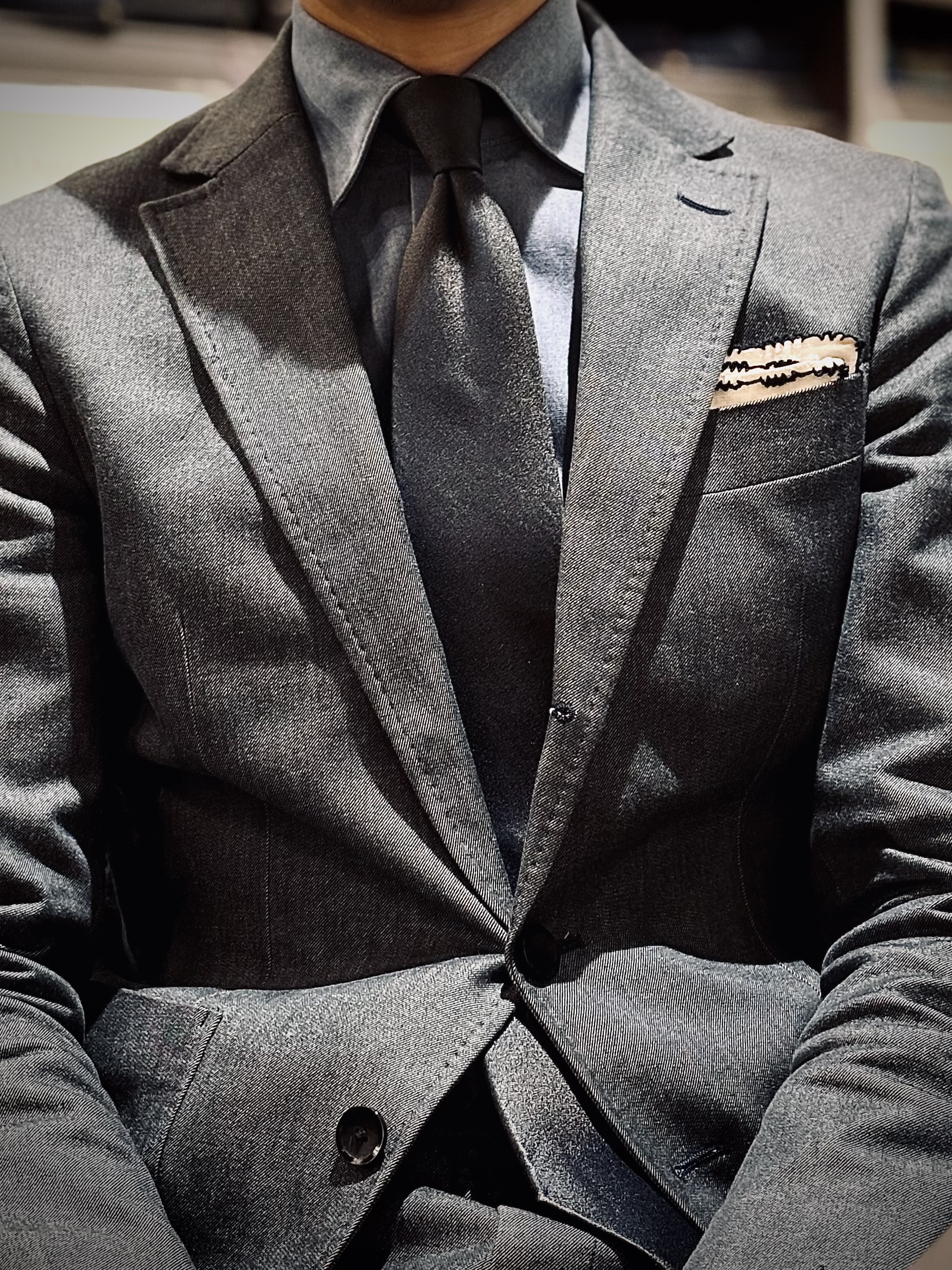 シワが入る過程を楽しめるスーツになりそうですね。