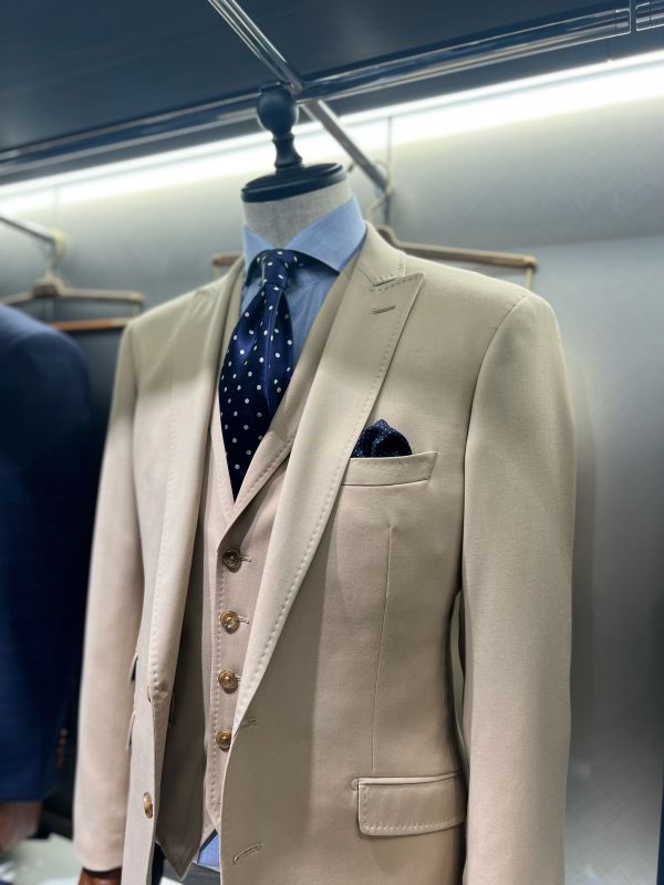 そこでベージュのスーツは柔らかく、淡い雰囲気が出る色味で、この夏オススメでございます!!
