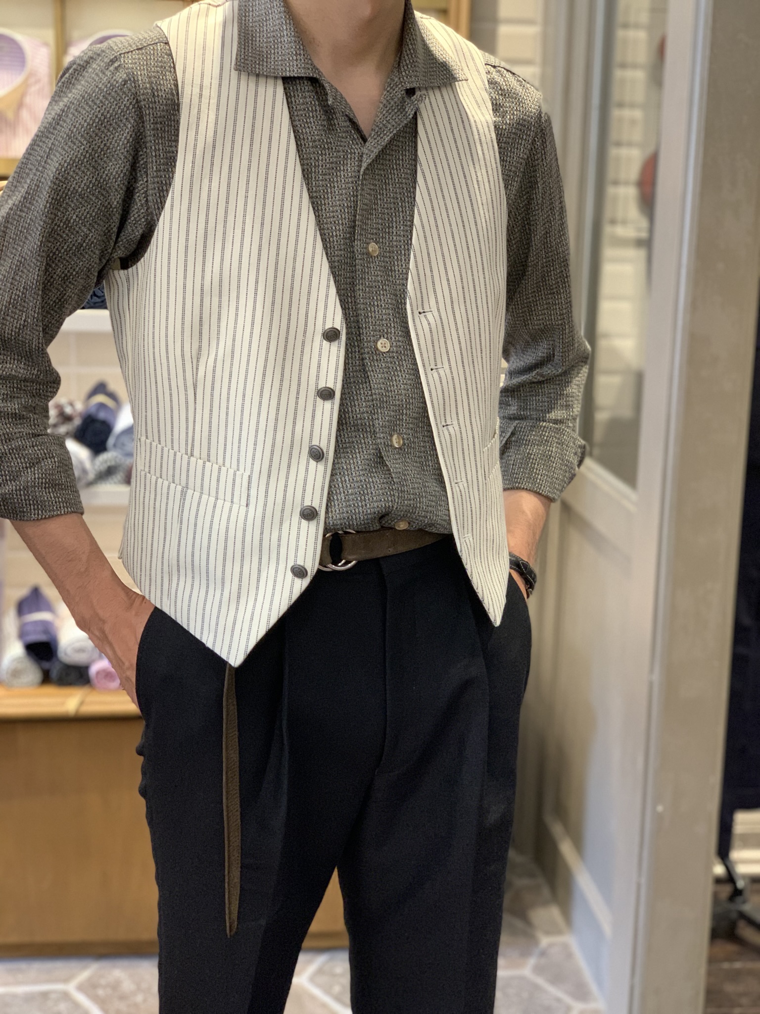 ジャケット以外でまっとうな恰好といえば、ベスト、俗に言うジレ。