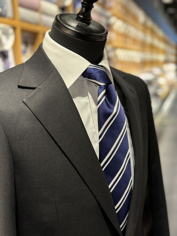 無地のネクタイはすごくお勧めですが、写真のようなネクタイでも大丈夫です。